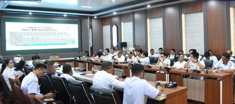SeputarDuniakalteng.com, MUARA TEWEH – Rabu (29/10/2025) – Bupati Barito Utara H. Shalahuddin memimpin rapat bersama seluruh kepala perangkat daerah di aula Setda, untuk membahas langkah strategis pelaksanaan Program 100 Hari Kinerja Bupati dan Wakil Bupati. Acara fokus pada peningkatan pelayanan publik dan pembangunan infrastruktur.