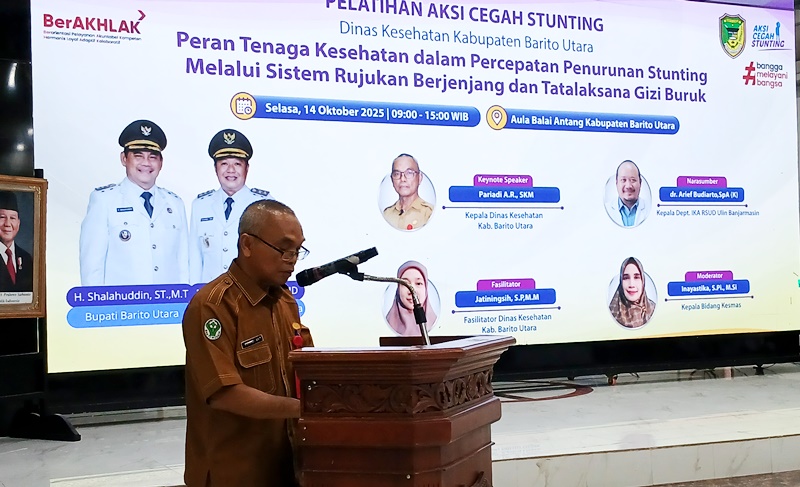 Hal itu disampaikan Pariadi saat membuka kegiatan Pelatihan Aksi Cegah Stunting, di Gedung Balai Antang Muara Teweh, Selasa (14/10/2025).