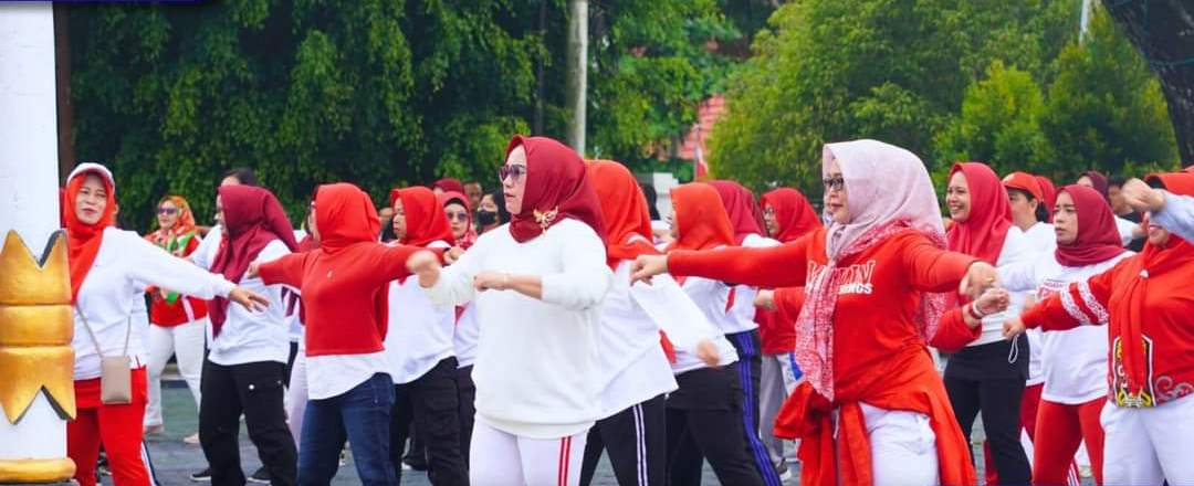 SeputarDuniakalteng.com, MUARA TEWEH – Memeriahkan Hari Ulang Tahun Kemerdekaan Republik Indonesia ke 78 dan Hari Ulang Tahun Kab. Barito Utara ke 74, Dharma Wanita Kesatuan Kabupaten Barito Utara melaksanakan senam pagi bersama-sama yang dilaksanakan dihalaman kantor Bupati Muara Teweh.