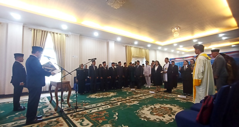 SeputarDuniakalteng.com, MUARA TEWEH – Penjabat Bupati Barito Utara, Indra Gunawan, secara resmi melantik dan mengambil sumpah janji jabatan 10 ASN, 1 Pengganti Antar Waktu (PAW) Kepala Desa, dan 8 PAW Badan Permusyawaratan Desa (BPD), lingkup Pemkab setempat, Senin (28/7/2025) di Aula Rumah Jabatan Bupati.