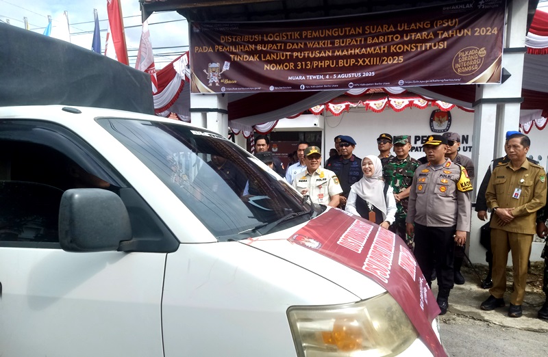 SeputarDuniakalteng.com, MUARA TEWEH – Penjabat (Pj) Bupati Barito Utara, Indra Gunawan, secara resmi melepas distribusi logistik Pemungutan Suara Ulang (PSU) Pemilihan Bupati dan Wakil Bupati Barito Utara Tahun 2024. Kegiatan pelepasan ini dilaksanakan di halaman Kantor Komisi Pemilihan Umum (KPU) Barito Utara, Senin (4/8/2025).