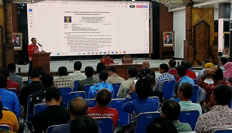 Pernyataan tersebut disampaikan melalui sambutan tertulisnya yang dibacakan oleh Asisten Bidang Pemerintahan dan Kesra Setda Barito Utara, Eveready Noor, saat membuka kegiatan Sosialisasi dan Pendampingan Percepatan Pembentukan Pos Bantuan Hukum di Gedung Balai Antang Muara Teweh, Jumat (12/9/2025).