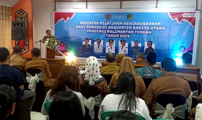 SeputarDuniakalteng.com, MUARA TEWEH – Sekretaris Daerah (Sekda) Kabupaten Barito Utara, Drs. Muhlis, secara resmi membuka kegiatan Pelatihan Kewirausahaan bagi Pemuda se Kabupaten Barito Utara tahun 2025 di Aula Dinas Kebudayaan, Pariwisata, Kepemudaan dan Olahraga (Budparpora) Barito Utara, Selasa (12/8/2025).